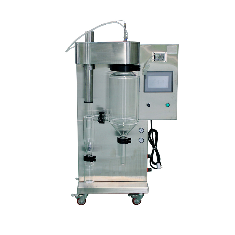 小型噴霧干燥機是液體成形工藝和干燥工業(yè)中最廣泛應(yīng)用的工藝,其為連續(xù)式常壓干燥器的一種,具有傳熱快,水分蒸發(fā)迅速,干燥時間瞬間的特點,且制品質(zhì)量好,溶解性能也好,能改善某些制劑的溶出速率,最適用于從溶液、乳液、懸浮液和糊狀液體原料中生產(chǎn)粉狀、顆粒狀固體產(chǎn)品,因此當(dāng)成品的顆粒大小分布、殘留水分含量、堆積密度和顆粒形狀都符合精確的標(biāo)準(zhǔn)時,噴霧干燥機就是十分理想的干燥設(shè)備。