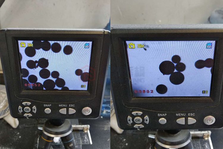 陶瓷粉混料噴霧干燥實(shí)驗(yàn)結(jié)果物料在顯微鏡下面的效果