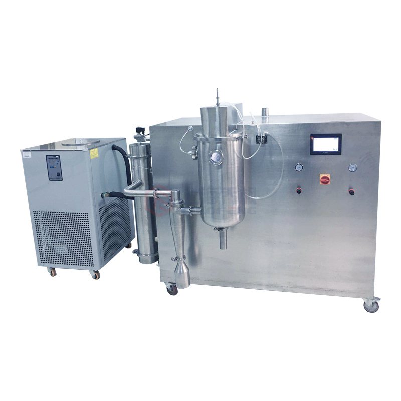 低溫噴霧干燥機及其主要適用于高校、研究所和食品,醫(yī)藥,化工,企業(yè),實驗室生產微量顆粒粉末,對溶液如乳濁液、懸浮液具有廣譜適用性, 適用于對熱敏感性物的干燥如生物制品、生物農藥、酶制劑等,因所噴出的物料只是在噴成霧狀大小霧滴時,才受到干燥風系統(tǒng),故只是瞬間受熱,能保持這些活性材料在干燥后仍維持其活性成份不受破壞。該型噴霧干燥機可以實現(xiàn)在常溫下進行噴霧干燥的低溫霧化干燥及高低溫霧化干燥兩用機型。